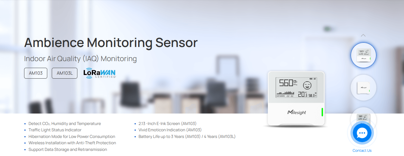 AM103/AM103L არის კომპაქტური IAQ სენსორი, რომელიც ზუსტად და ეკონომიურად ადგენს CO2-ის კონცენტრაციას, ტენიანობას და ტემპერატურას.