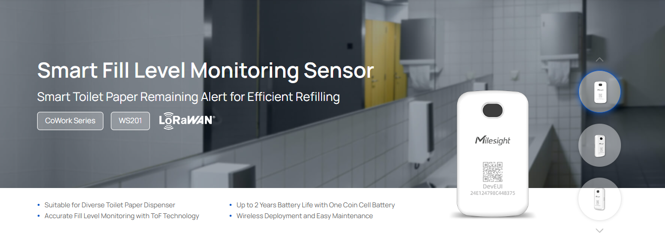 WS201 არის უკაბელო სენსორი, რომელიც იყენებს ToF ტექნოლოგიას კონტეინერების შევსების დონის მაღალი სიზუსტით მონიტორინგისთვის. Milesight LoRaWAN®-თან და Milesight IoT Cloud-თან მუშაობით, WS201 საშუალებას აძლევს მომხმარებლებს დისტანციურად აკონტროლონ და მართონ კონტეინერების შევსების დონეები და სტატუსი რეალურ დროში.