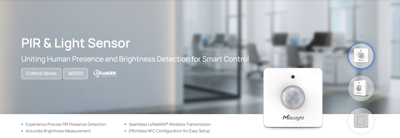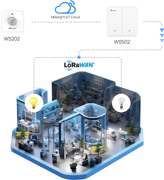 Milesight WS50x კედლის გადამრთველთან ან WS558 ჭკვიანი განათების კონტროლერთან მუშაობით, WS202 უზრუნველყოფს განათების ავტომატურ კონტროლს, რომელიც დაფუძნებულია დაკავებულობის დეტექტირებაზე, როდესაც ადამიანები შემოდიან ან ტოვებენ სივრცეს.