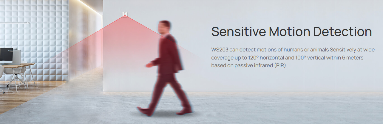 WS203-ში PIR სენსორის აღმოჩენის დიაპაზონის რეგულირება შესაძლებელია სხვადასხვა სტანდარტული PIR საფარის საშუალებით, სხვადასხვა აღმოჩენის გარემოსთან ადაპტაციის მიზნით.