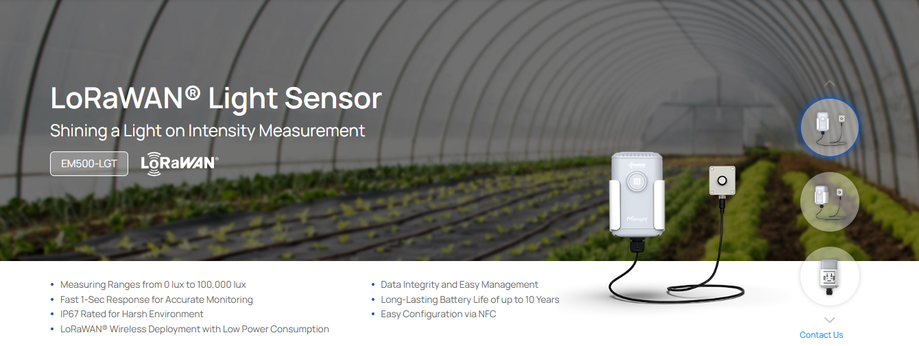 EM500-LGT შექმნილია გარემოს სინათლის ინტენსივობის დასადგენად რთულ გარემოში. ის სასარგებლოა მრავალი დანიშნულებით, როგორიცაა სიკაშკაშის კონტროლი, უსაფრთხოება, მებაღეობა, ყვავილების მოყვანა და ა.შ.