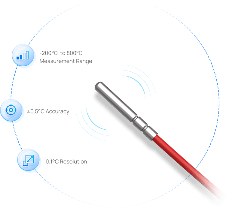 დამზადებულია ძვირფასი პლატინის მასალისგან, რომელიც გამოირჩევა განსაკუთრებული ტემპერატურისადმი მდგრადობით, რაც უზრუნველყოფს ტემპერატურის სტაბილურ და ზუსტ გაზომვას ექსტრემალური სიცხის დროსაც კი. მოწყობილობას შეუძლია გაუძლოს ექსტრემალურ ტემპერატურულ დიაპაზონს, გაყინვიდან -200°C-მდე გამდნარ 800°C-მდე, რაც მას შესანიშნავ სენსორულ მოწყობილობად აქცევს ფართო სპექტრის გამოყენებისთვის, სამრეწველო ქარხნებიდან დაწყებული ექსპერიმენტული ლაბორატორიებით დამთავრებული.