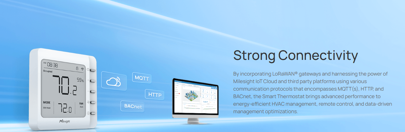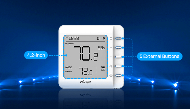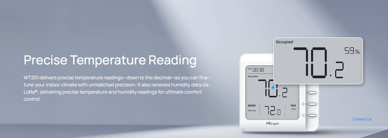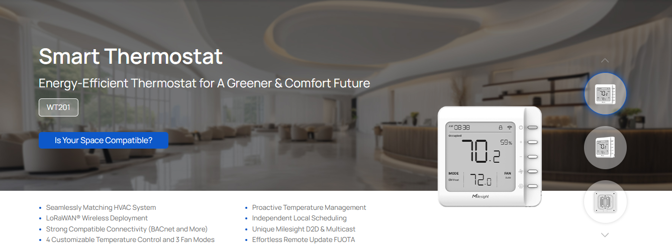 Milesight WT201 ჭკვიანი თერმოსტატი HVAC კონტროლის ახალ განმარტებას ცვლის და იყენებს LoRaWAN® ტექნოლოგიას შეუდარებელი კომფორტისა და ენერგოეფექტურობისთვის. ტრადიციული თერმოსტატებისგან განსხვავებით, ის გთავაზობთ დისტანციური მართვის შესაძლებლობებს, რომლებიც შეუფერხებლად შეესაბამება მწვანე ენერგიის სტრატეგიას. გააუმჯობესეთ თქვენი საცხოვრებელი სივრცეები გათბობა-გაგრილების მოწინავე მართვით, მდგრადობასა და ეკოლოგიურად სუფთა პრაქტიკას პრიორიტეტად აქცევს.