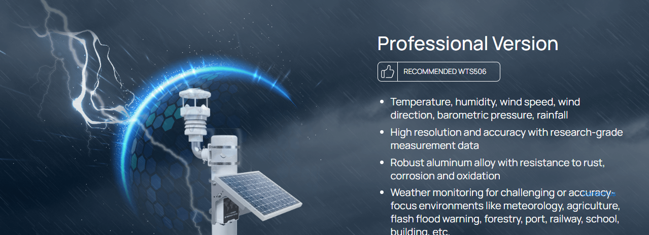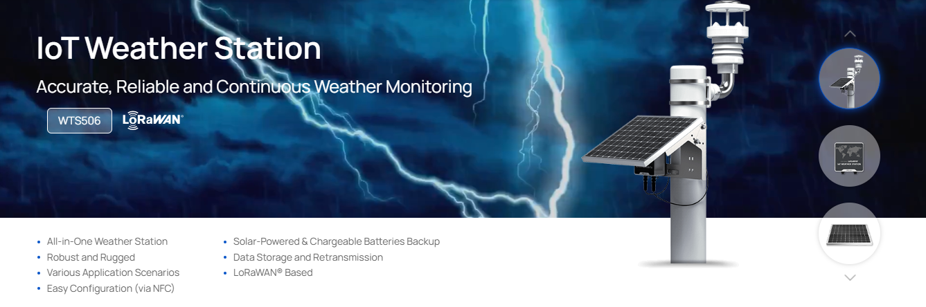 სპეციალურად შექმნილი ამინდის უწყვეტი მონიტორინგისთვის, Milesight IoT მეტეოროლოგიური სადგური წარმოადგენს საუკეთესო, ყოვლისმომცველ ამინდის მონიტორინგის სისტემას WTS სენსორებით, WTS ჰაბით და მზის პანელით სხვადასხვა ატმოსფერული პირობებისთვის.